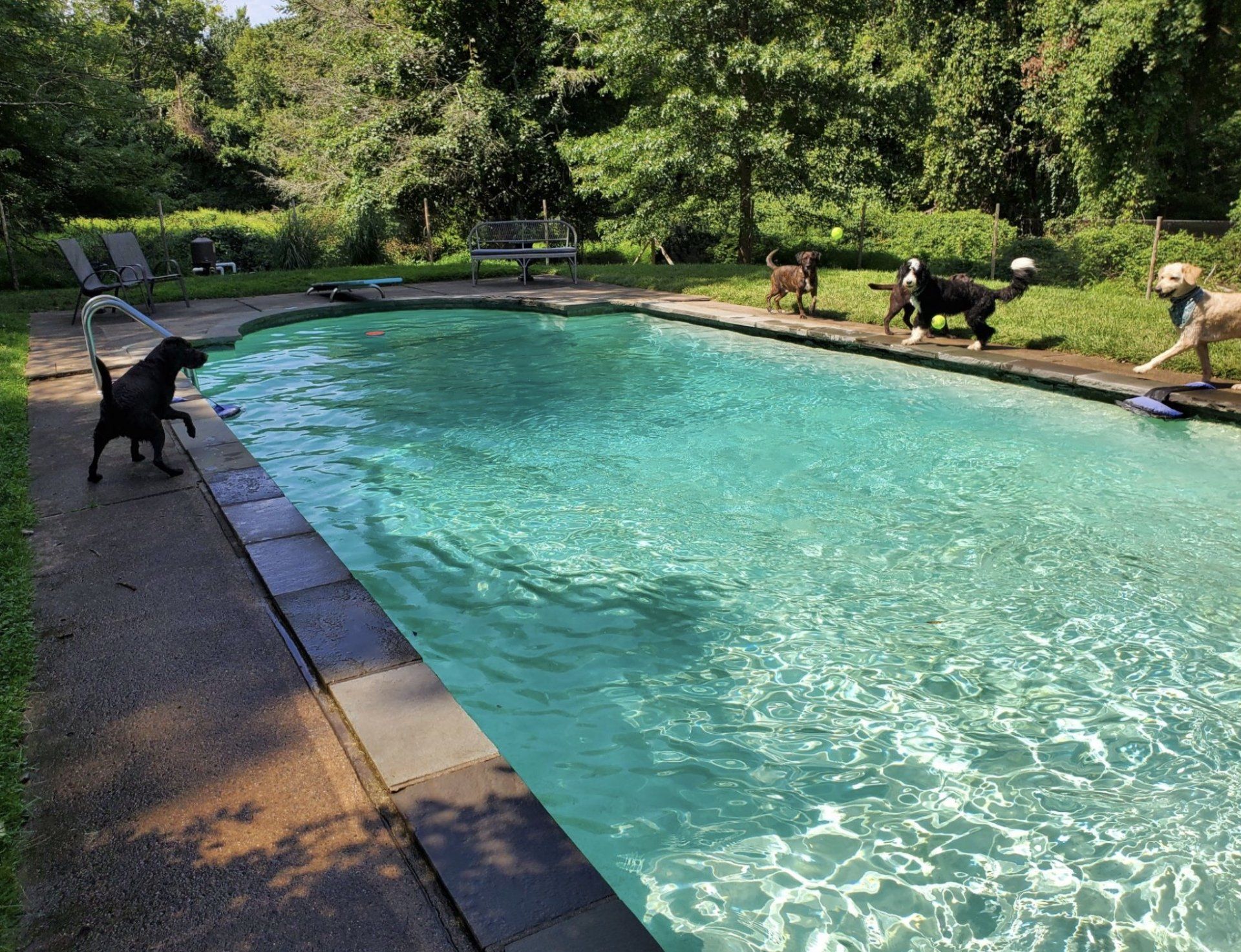 Our K-9 compound is located in the beautiful Greenfield Hill area of Fairfield CT. Over 4 acres of grass and wooded lakefront areas provide lots of fun-filled activities for the pack. In summertime, a huge inground pool provides hours of swimming fun for the dogs that partake. Regardless of the season, our compound is like a little piece of heavenly wonderland for our dogs.